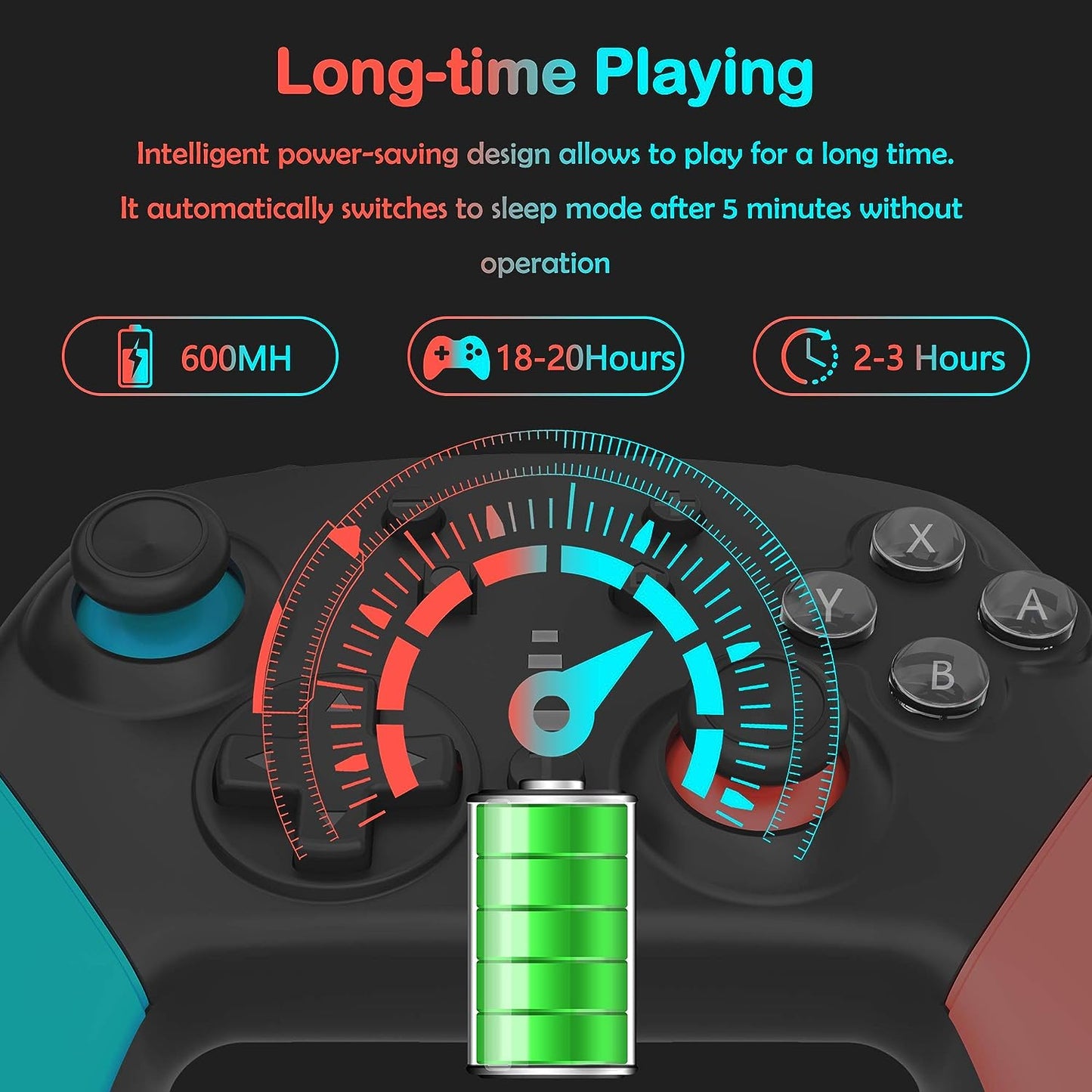 - 🎮【1200Mah Battery Support 20 Hours Playing 】SCOZER wireless pro controller Built-in 1200Mah rechargeable battery and including a USB-c cable, only takes 2-3 hours to be fully charged and lasts 20 hours of continuous playing.