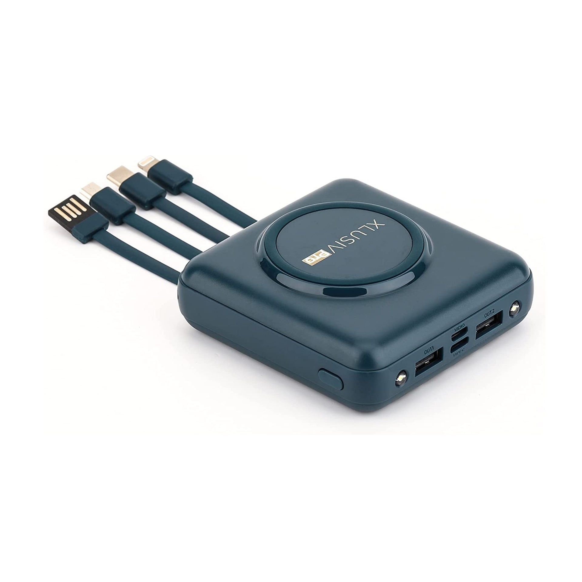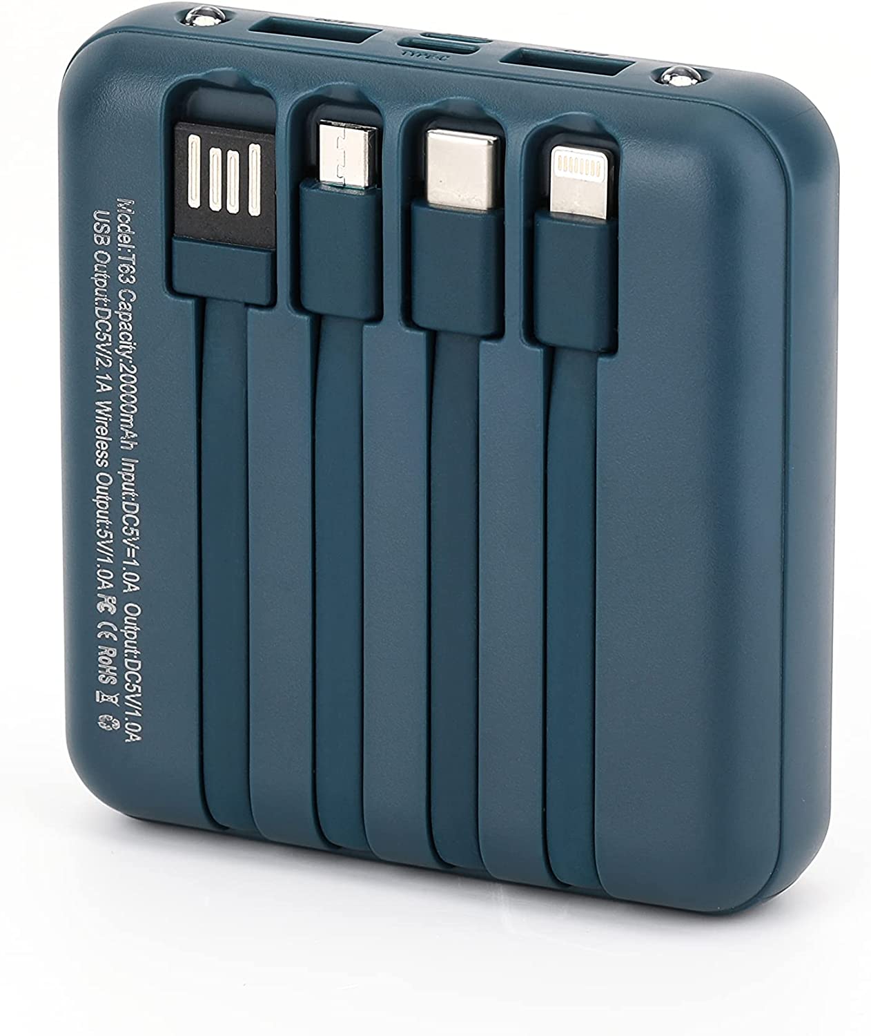 - XlusivPro Mini 20000mAh Wireless Power Bank with Built-in 4 Cable Phone Charger Ultra Slim Dual USB High Speed Fast Charging Power Bank Light Compact External Battery Pack iPhone Android (Blue)